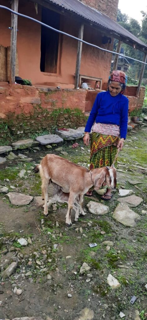 Voor 6 families in Pumdi die moeite hebben met overleven zijn er, samen met Sapana Nepla, zeven geiten aangeschaft en verdeeld over de 6 families. Dit is gedaan met het geld dat over was van de actie in Corona. De geitjes zijn gegaan naar gezinnen die, na Corona, een steuntje in de rug konden gebruiken.