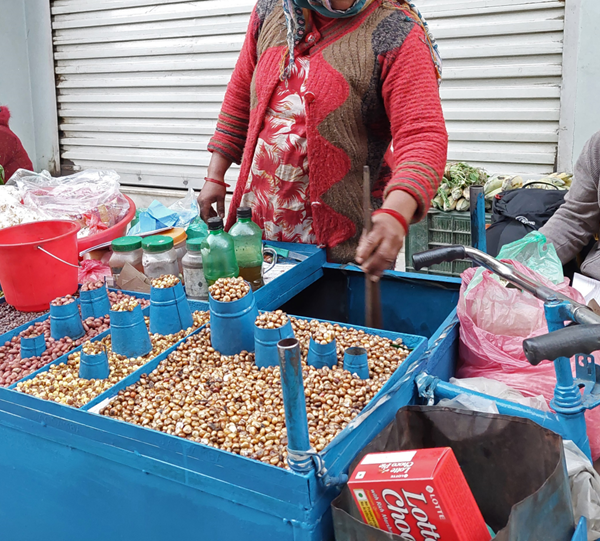 Rama is een alleenstaande vrouw van 39 met een zoon Kamal* van 14 jaar (klas 7). Haar man drinkt en heeft losse handjes. Ze heeft haar dorp verlaten met haar zoon en is verhuisd naar de stad om geld te verdienen voor de scholing van haar zoon. Ze wonen samen in een achtertuin van mensen in Kathmandu… een hutje van beton blokken en golfplaten. Rama is een harde werker. ’s Ochtends helpt ze de huisbaas en rond 1pm gaat ze met haar karretje richting Boudha, half uur lopen. Ze verkoopt geroosterde pinda’s, sojabonen, mais, kikkererwten etc. als snack. ’s Avonds rond 7-8pm keert ze terug naar haar onderkomen, koken voor hun beide en … slapen. Kamal doet het goed op school en helpt zijn moeder door ’s avonds het eten te koken.